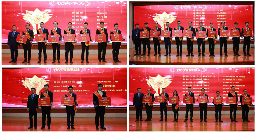 經(jīng)營(yíng)管理商學(xué)院院長(zhǎng)邵金光宣讀2019年度表彰決定。2019年共評(píng)出19個(gè)獎(jiǎng)項(xiàng),其中優(yōu)秀團(tuán)隊(duì)獎(jiǎng)8項(xiàng)、優(yōu)秀班組3項(xiàng)、優(yōu)秀個(gè)人獎(jiǎng)7項(xiàng),共有9個(gè)團(tuán)隊(duì)小組及17名員工憑借突出貢獻(xiàn)、驕人業(yè)績(jī)以及優(yōu)異工作表現(xiàn)獲得獎(jiǎng)項(xiàng),相關(guān)領(lǐng)導(dǎo)予以頒獎(jiǎng)。